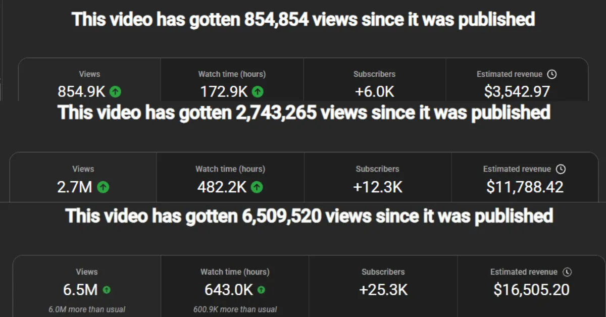 The analytics below reflect real views, real watch time, and real monetized revenue from channels built using this exact structure. This is the foundation I now install for serious applicants.